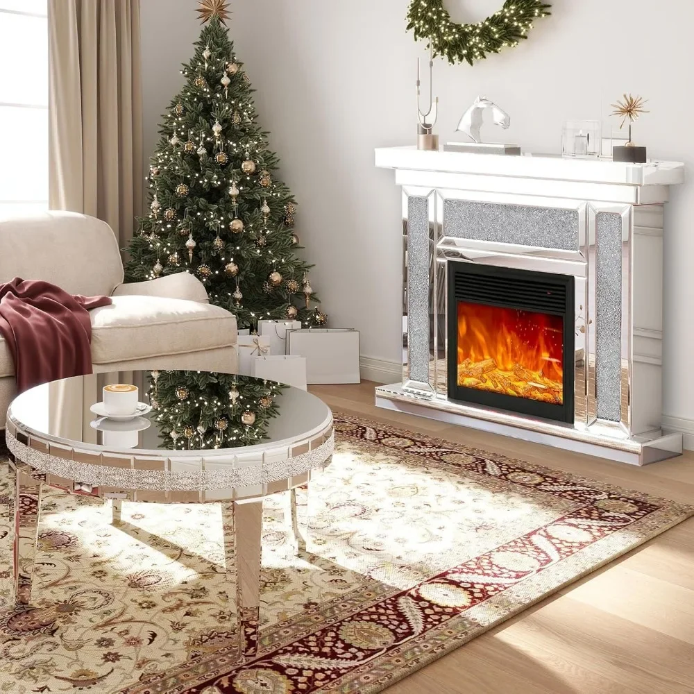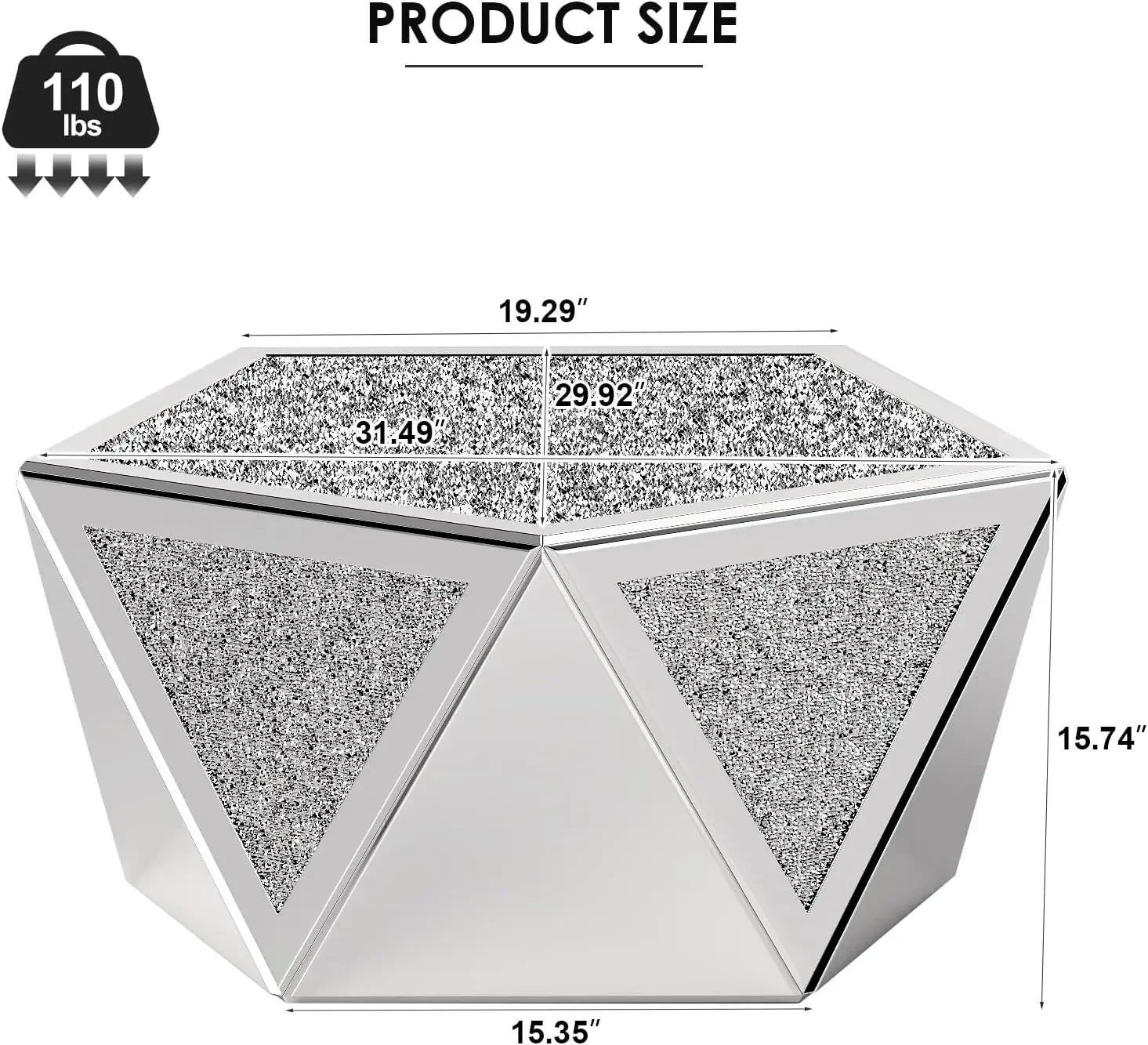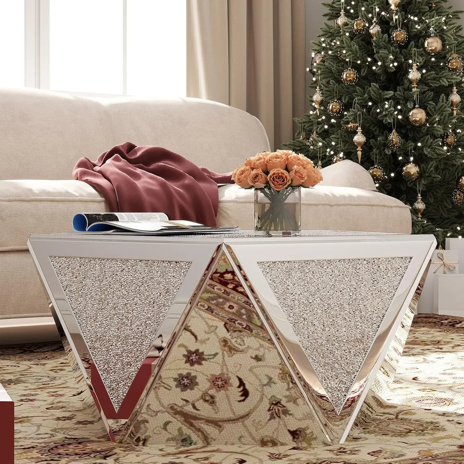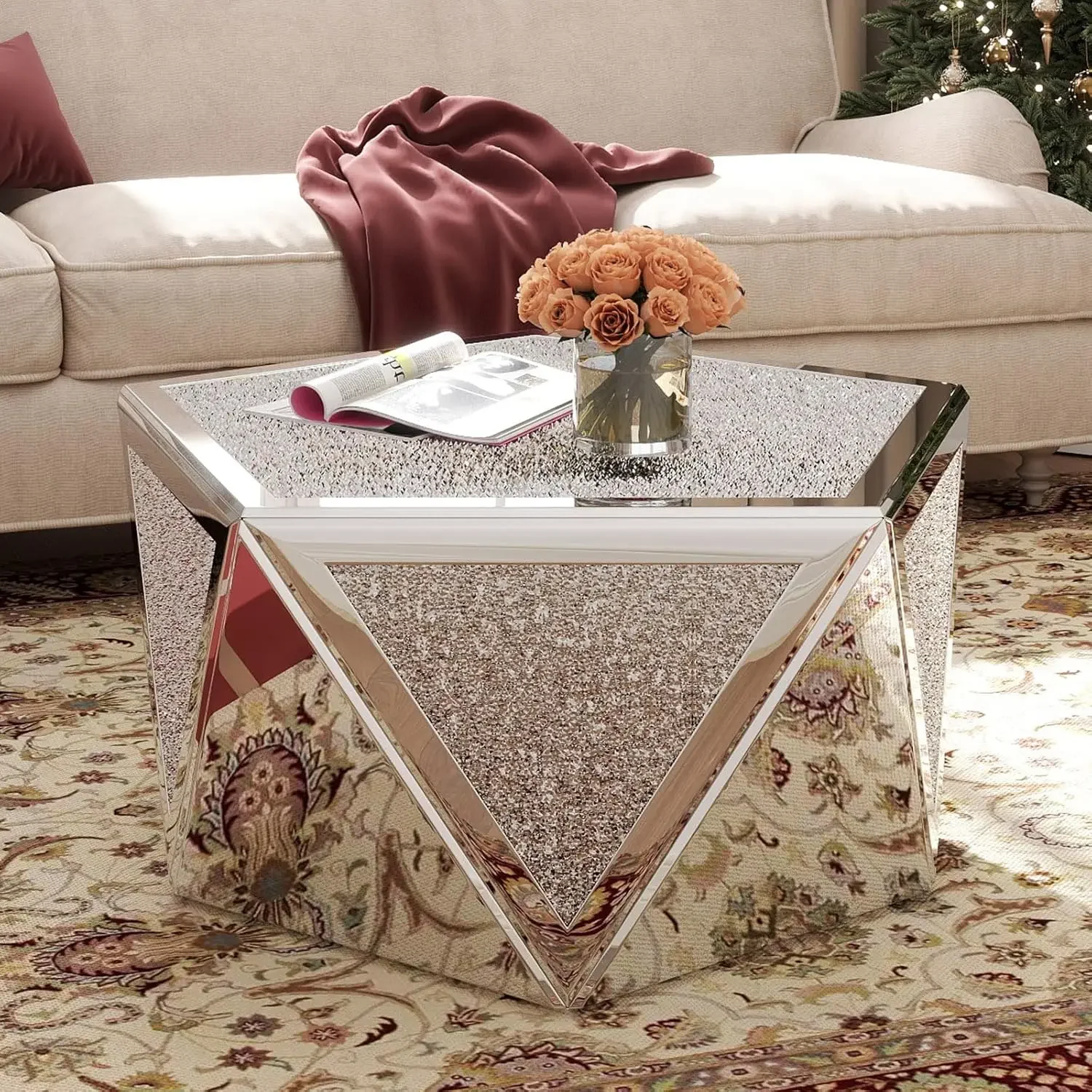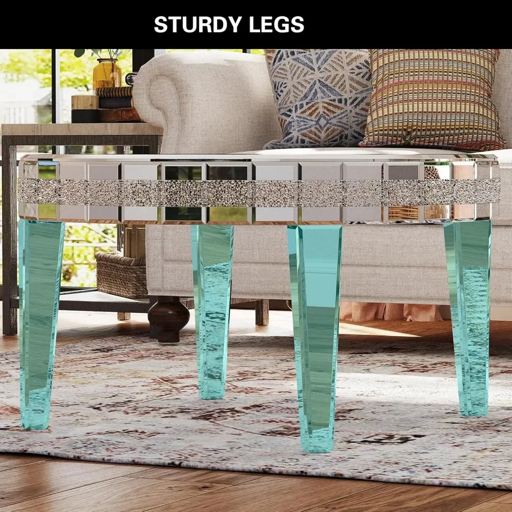 • Sparkling Accents: The mirrored coffee table is adorned with a shimmering, glittery finish that adds a touch of glamour and sophistication