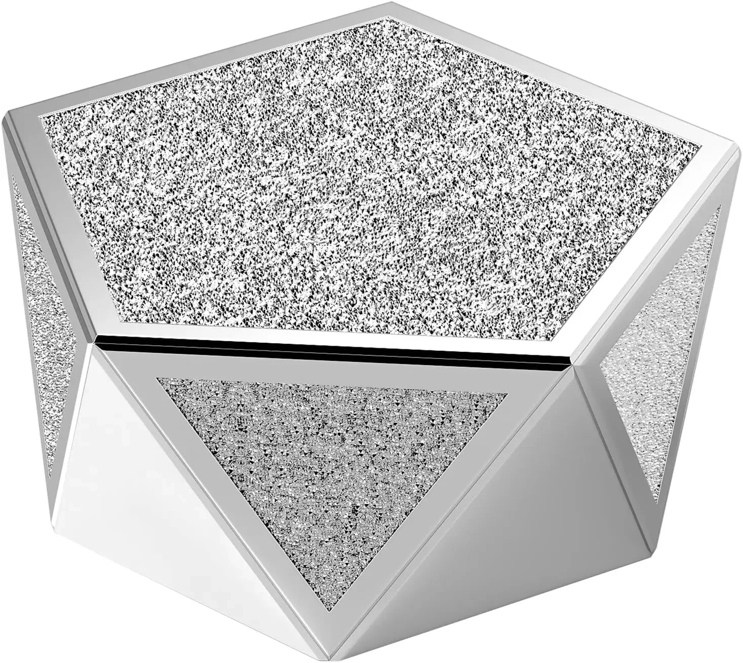 • Geometric Design: This silver coffee table features a striking geometric design with pentagonal panels that create a unique and eye-catching silhouette